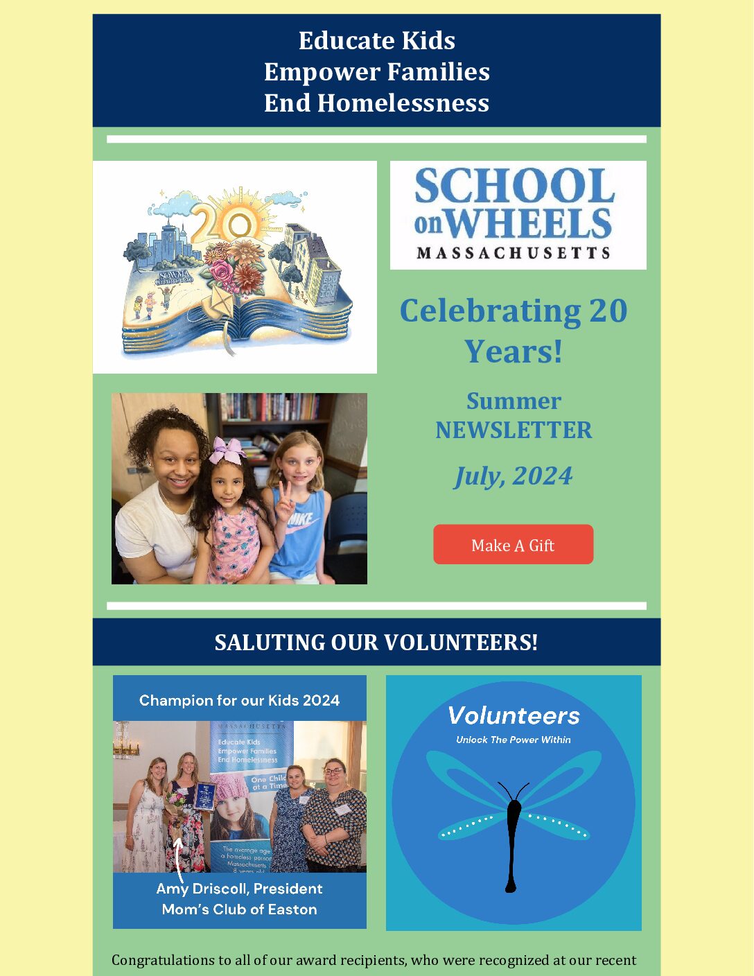 I am deeply honored that School on Wheels of Massachusetts (SOWMA) has been selected as a community partner in the Brockton Education and Housing Coalition. Thank you to Earl J. Edwards, The...